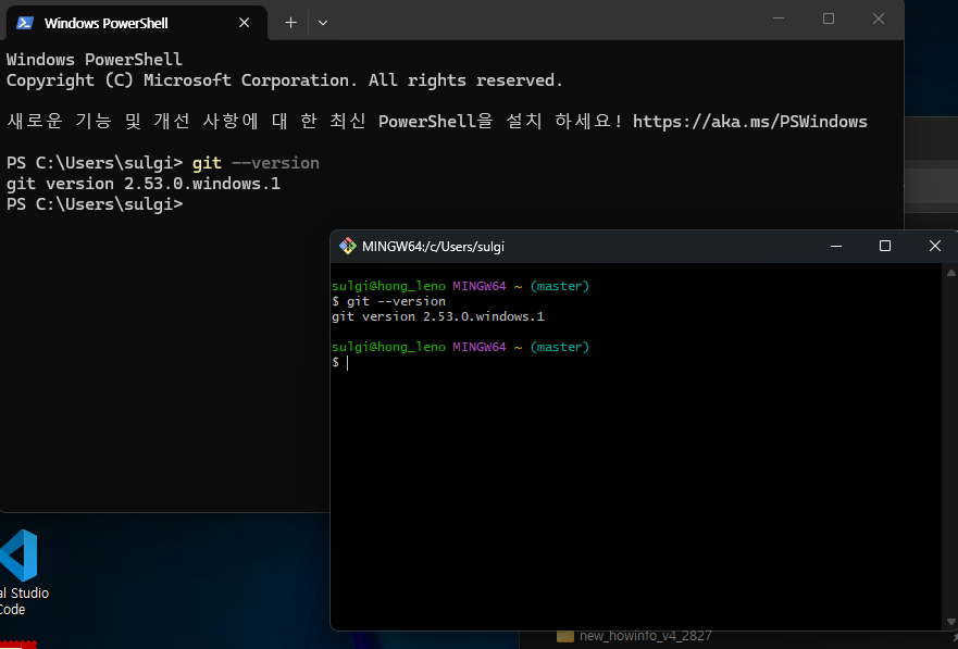→ CMD/PowerShell/VS Code에서 git 명령이 바로 먹게 됨