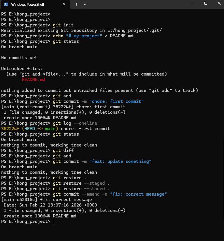6) 이제 진짜 시작: “내 폴더를 Git으로 관리하기”